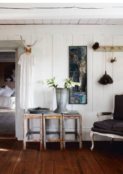 Jag har den fortfarande sparad, den första tidning jag såg deras hem i…när de bodde på andra våning i gårdens gamla bränneri. Det första jag fastnade för var alla de vackra vita terrinerna och att de till och med hade helvita katter som matchade den övriga inredningen perfekt…minns att jag tänkte att här har inget lämnats åt slumpen.